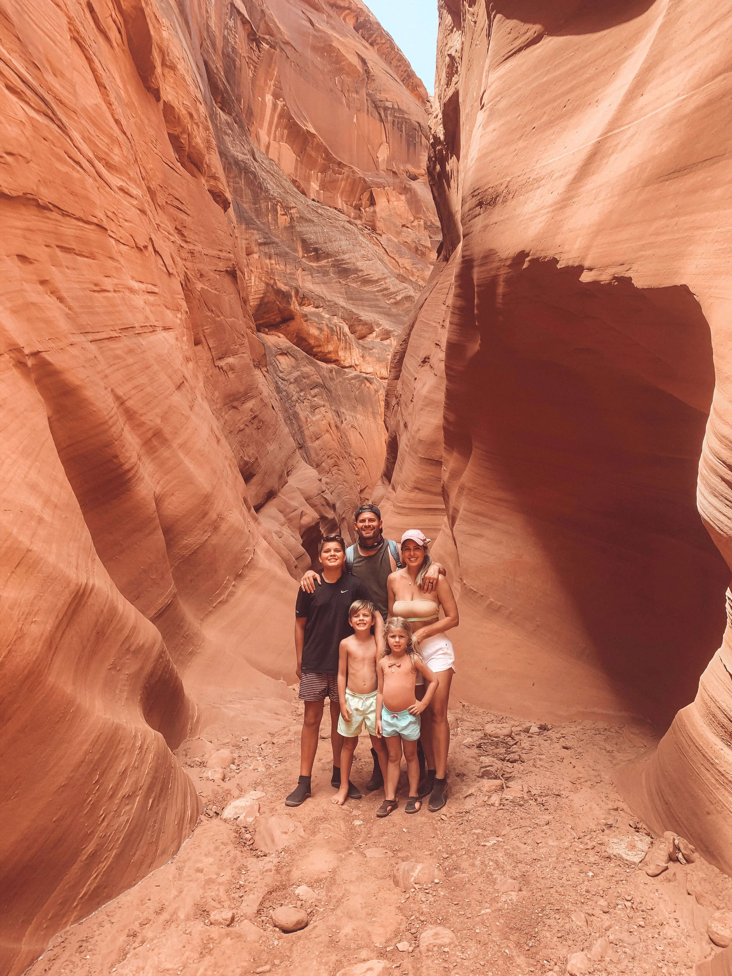In normal years you can do the walking tour which dumps you right in the heart of the canyon. I’ve heard great things about upper antelope canyon, and I’m excited to go back and experience it sometime. If we didn’t have the kids with us, I’m sure Brooks and I would of explored for hours. It was so peaceful back there. Well, peaceful besides our kids asking when we could go back and swim ha! We walked around for about another 45 minutes and then started the journey back, this time with many more swim stops!!